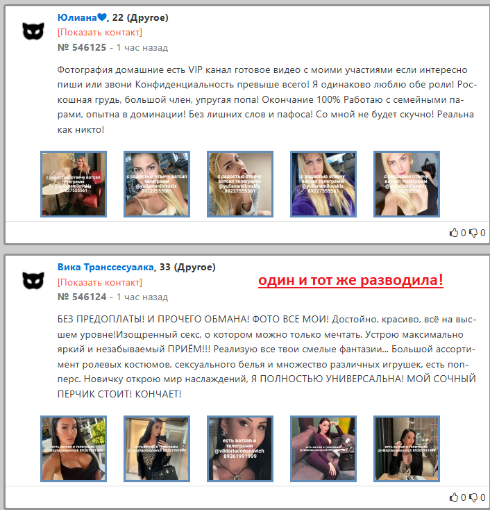 ДО 90% ОБЪЯВЛЕНИЙ ТУТ ЭТО РАЗВОД НА ДЕНЬГИ! ЧЕРНОЖОПЫЕ ПИШУТ ПОСТЫ ПРИКРЕПЛЯЯ ФОТО ПОРНО МОДЕЛЕЙ ИЛИ ЕЩЁ ЧАЩЕ МОДЕЛЕЙ ON.LYF.ANS ( любое фото отсюда можно пробить через яндекс поиск по фото) ОНИ СОЗДАЮТ ТГ КАНАЛЫ И СКАЧИВАЮТ ТУДА ПОРНО С ИНТЕРНЕТА И ПРОДАЮТ ПОД ВИДОМ СВОЕГО КОНТЕНТА. ПРОСЯТ ПРЕДОПЛАТУ И КИДАЮТ!